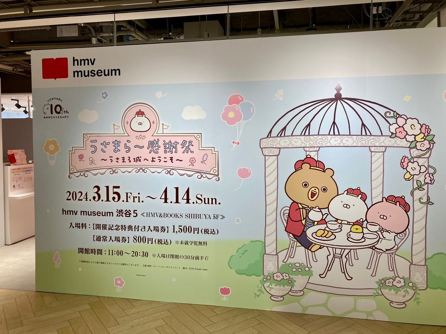 全国6会場(東京・西宮・名古屋・札幌・仙台・福岡)を巡回開催する企画展『うさまらー感謝祭 ~うさまる城へようこそ~』が、2024年3月15日(金)から、東京会場(HMV&BOOKS SHIBUYA 5F「hmv museum 渋谷5」)を皮切りにスタートいたしました。