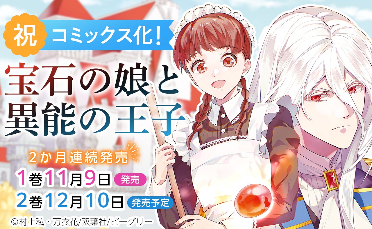 お得感No.1のコミック配信サービス『まんが王国』(https://comic.k-manga.jp/)を中核に、コンテンツプロデュースを行う株式会社ビーグリー(本社:東京都港区、代表取締役:吉田仁平、東証スタンダード:3981)は、当社のオリジナル作品「宝石の娘と異能の王子」の紙単行本が、株式会社双葉社のモンスターコミックfより2024年11月9日(土)から2ヵ月連続で発売されることが決定しましたので、お知らせいたします。