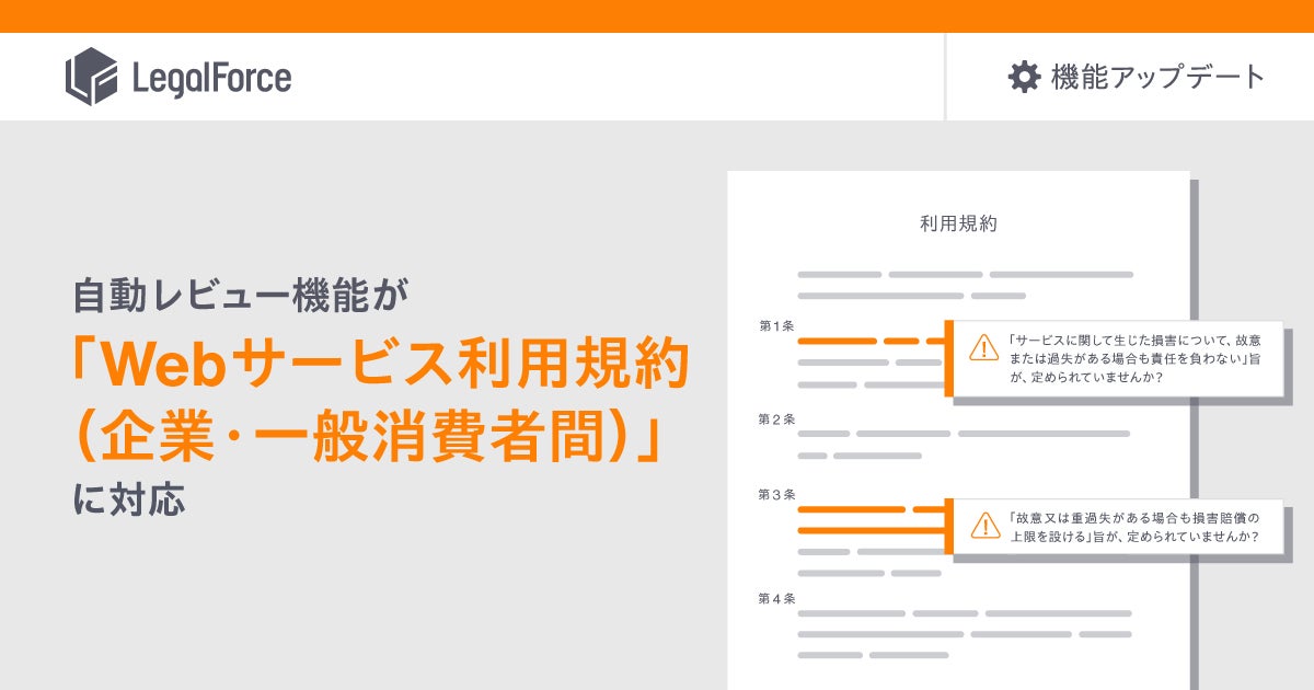 AI契約審査プラットフォーム「LegalForce」、自動レビュー機能が「Webサービス利用規約(企業・一般消費者間)」に対応開始