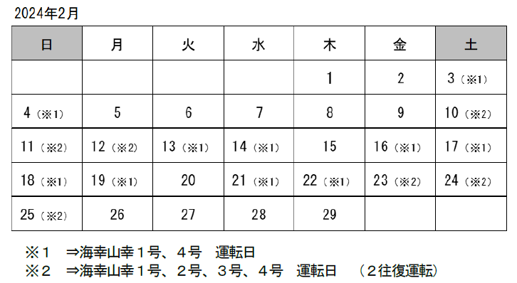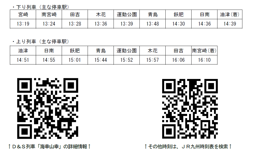 (1)特急「海幸山幸」の「2往復運転」の増便を下記の日程でします。