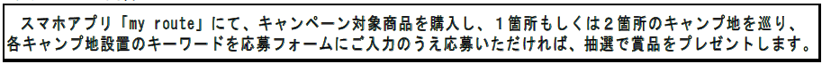 スマホアプリ「my route」と連携した「デジタルキーワードラリー」では、プロ野球グッズや宮崎市特産品、日南市特産品を抽選でプレゼント。また、日南線の油津駅・南郷駅では日南線利用促進協議会様より列車利用のお客さま500名限定にキャンプ地にて使用可能な「商品券500円分」をプレゼントします!