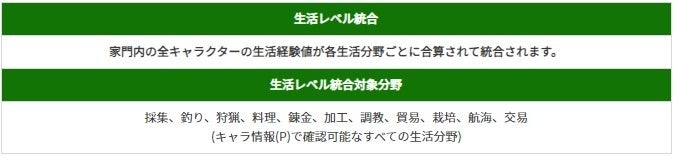 キャラクターごとに適用されていた採集や釣りなど分野別の生活レベルが家門単位で統合されました。 これまで各キャラクターで得た生活経験値は全て合算され、利便性が向上します。 また、各分野での最高レベルが道人Lv.50でしたが、今後は道人Lv.100が上限となります。