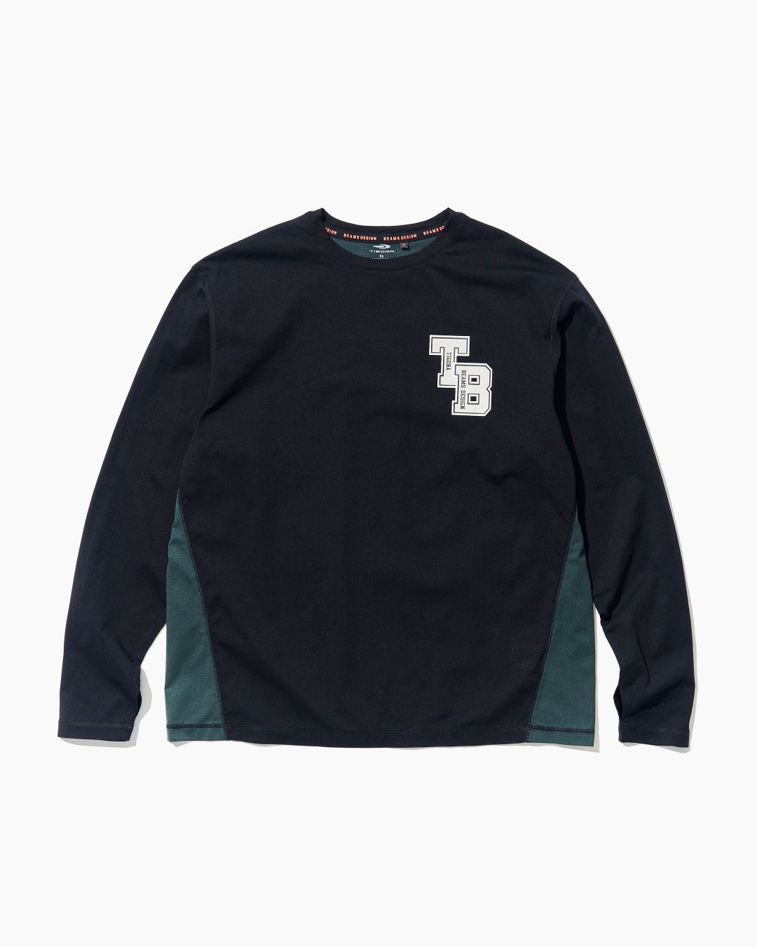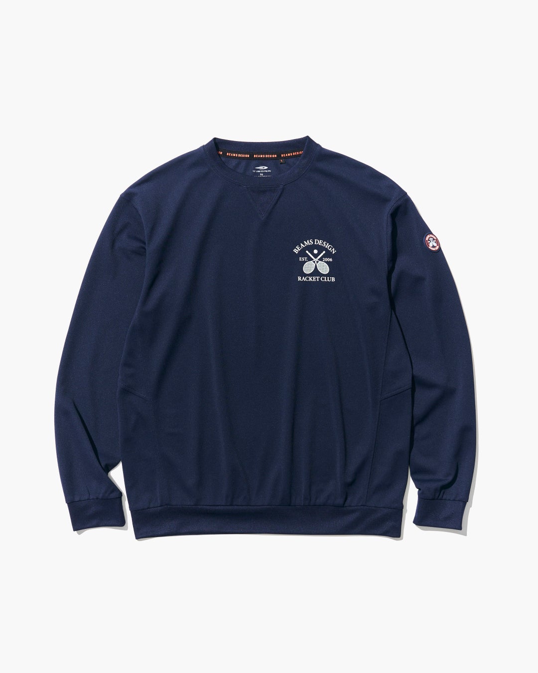 クラシックな「BEAMS DESIGN RACKETCLUB」グラフィックが特徴のテニスコレクション。襟リブはVガゼット付きのスウェットディテールでドライカノコ素材で仕上げたロングTシャツ。手を挙げやすいよう脇のカッティングを入れています。