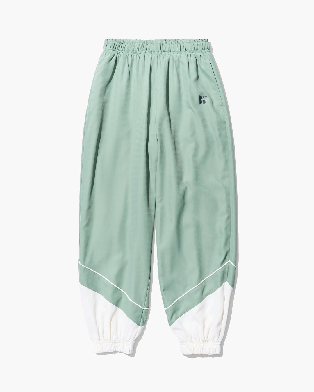 ストレッチポリエステル生地を使用したクロスウインドパンツ。リラックス感のあるストレートシルエットとパイピングデザインが特徴的。同素材のクロスウインドジャケットとセットアップでコーディネートが可能です。