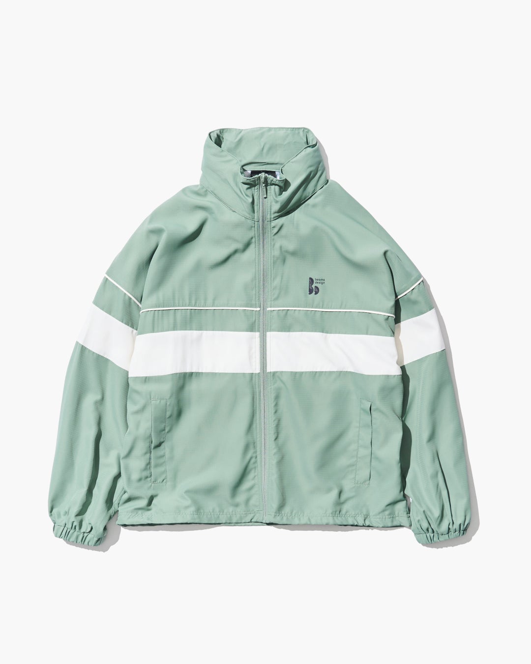ストレッチポリエステル生地を使用したクロスウインドジャケット。特徴的なパイピングデザイン。同素材のクロスウインドパンツとセットアップコーディネートが可能です。
