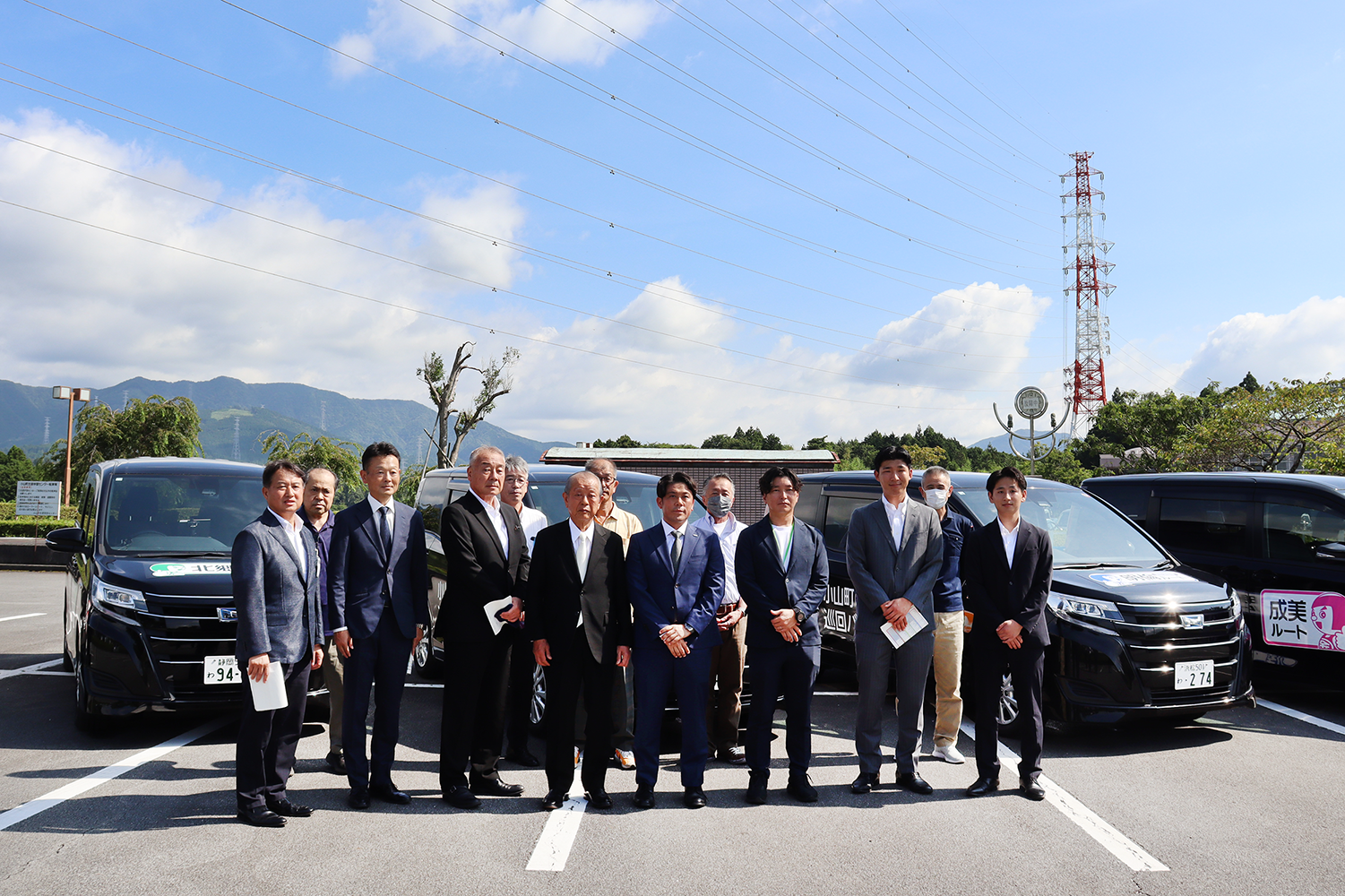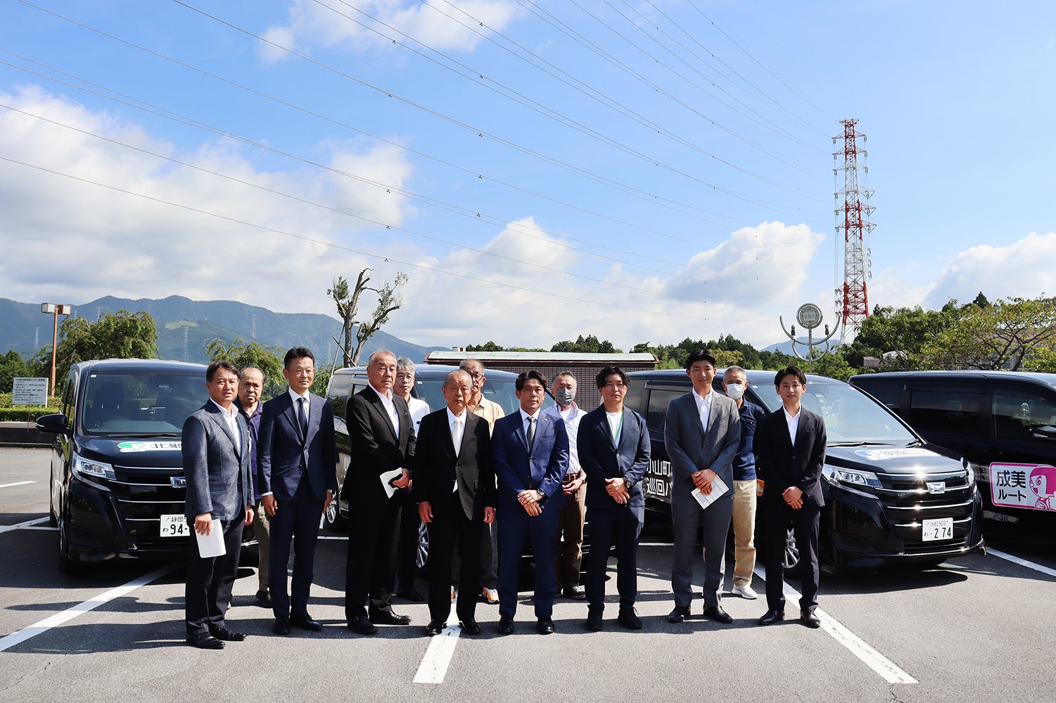 8月1日に小山町総合文化会館にて出発式が執り行われ、みつばモビリティ取締役社長執行役員 浜地康太及び担当社員もご紹介いただきました。