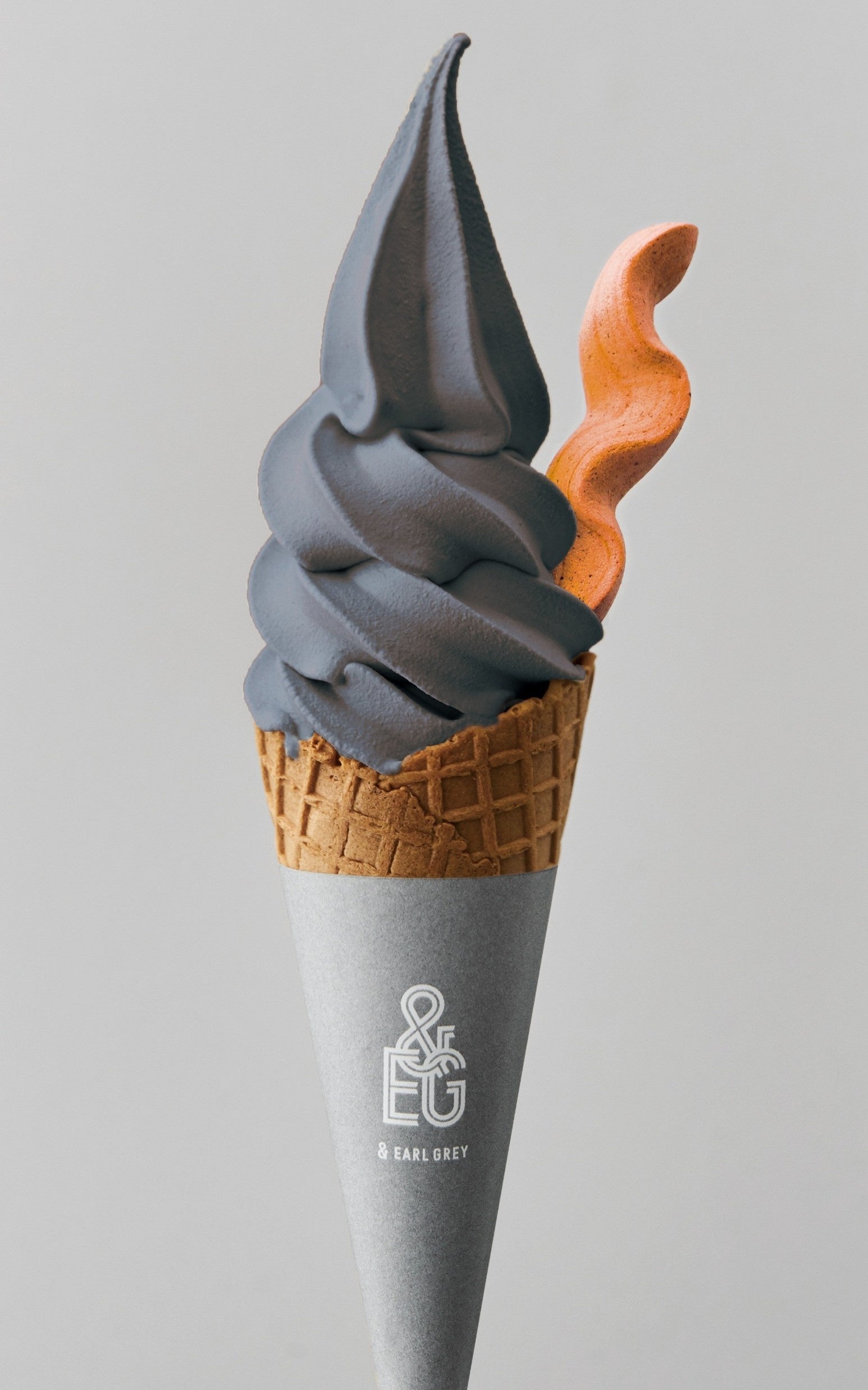 焙煎する前の生豆を氷温熟成させた、深みのあるコーヒー豆と国産竹炭で作った黒いソフト。コクのある生乳で作った、アールグレイ香る濃厚珈琲ソフトには、アプリコットのメレンゲをトッピング。