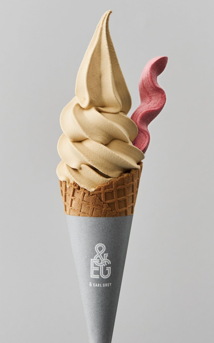 「食べるミルクティー」と言われる、約50倍の茶葉を抽出して作ったベルガモット香る濃厚紅茶ソフト。甘酸っぱいフランボワーズのメレンゲをトッピング。