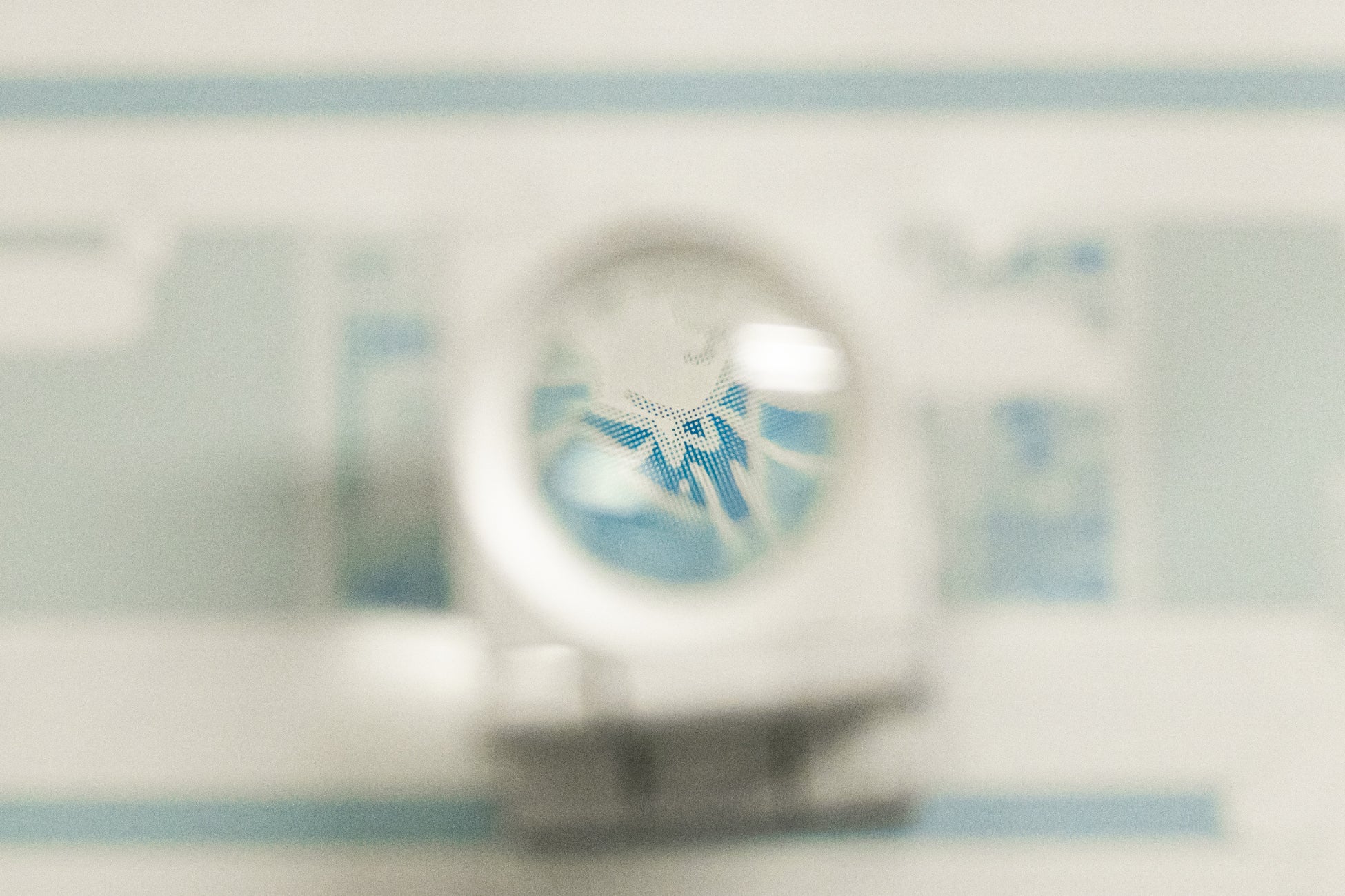 | 印刷の現場から一言! 「版づくりは、平たくいうと版画のようなプロセス。自動といえども機械のみでその細やかな調整を行うのは難しく、ルーペを用いて版ずれがないかを確認するなど手作業を加えながら作製しています」(東京リスマチック株式会社 舟渡工場副工場長/印刷グループ総括・宇野聡さん) |