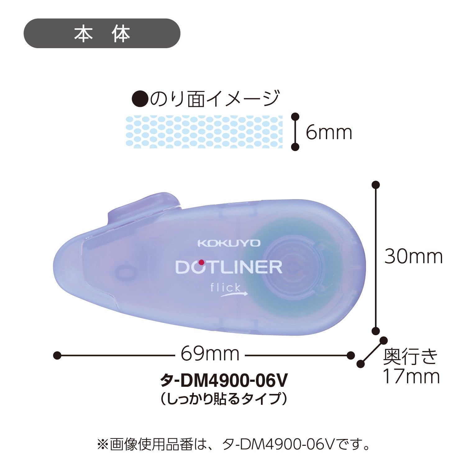 ドットライナーは、のりがドットバターンに配置されたテープのりです。従来のテープのりに対する、のり切れの悪さ、テープの引き感の重さに対する不満を解消するため、のりをドット状にするという発想で、生まれました。テープ状ののりなので、時間を待たずに接着でき、手やまわりを汚さずに使えます。また、紙がシワになりにくく、キレイに仕上がります。目的や用途に合わせたバリエーションは、現在70品番以上取り揃えており、様々なシーンで「貼る」を快適にサポートするシリーズです。