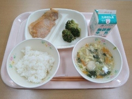 献立例:北海道森町の給食からレシピの紹介を受けたホタテの中華スープ、その他