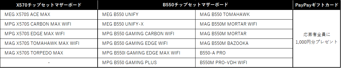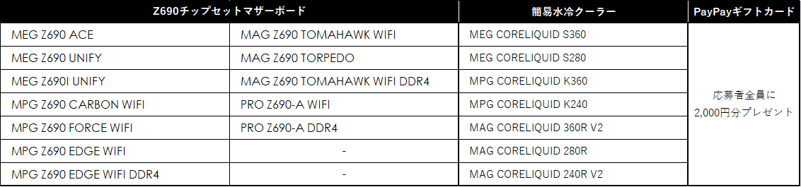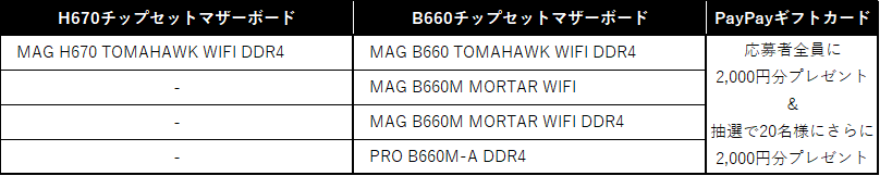 ・PayPayギフトカード2,000円分(H670/B660チップセット搭載機種の応募者の中から抽選で20名様にプレゼント)