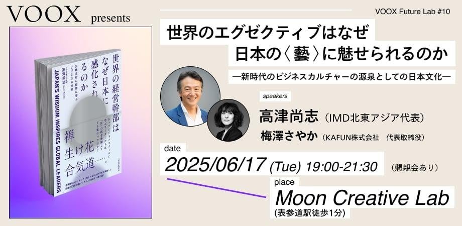 世界のエグゼクティブ教育を牽引するIMD北東アジア代表・高津尚志氏と、ブランドや文化を再編集するカルチャーマーケティング・コンサルタントの梅澤さやか氏によるトークイベントです。