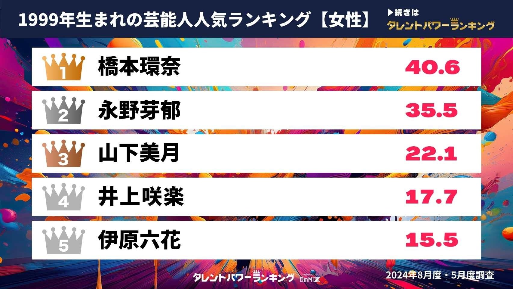 『タレントパワーランキング』では、タレントパワーランキングに登録されている、1999年生まれの芸能人のパワースコアを調査。