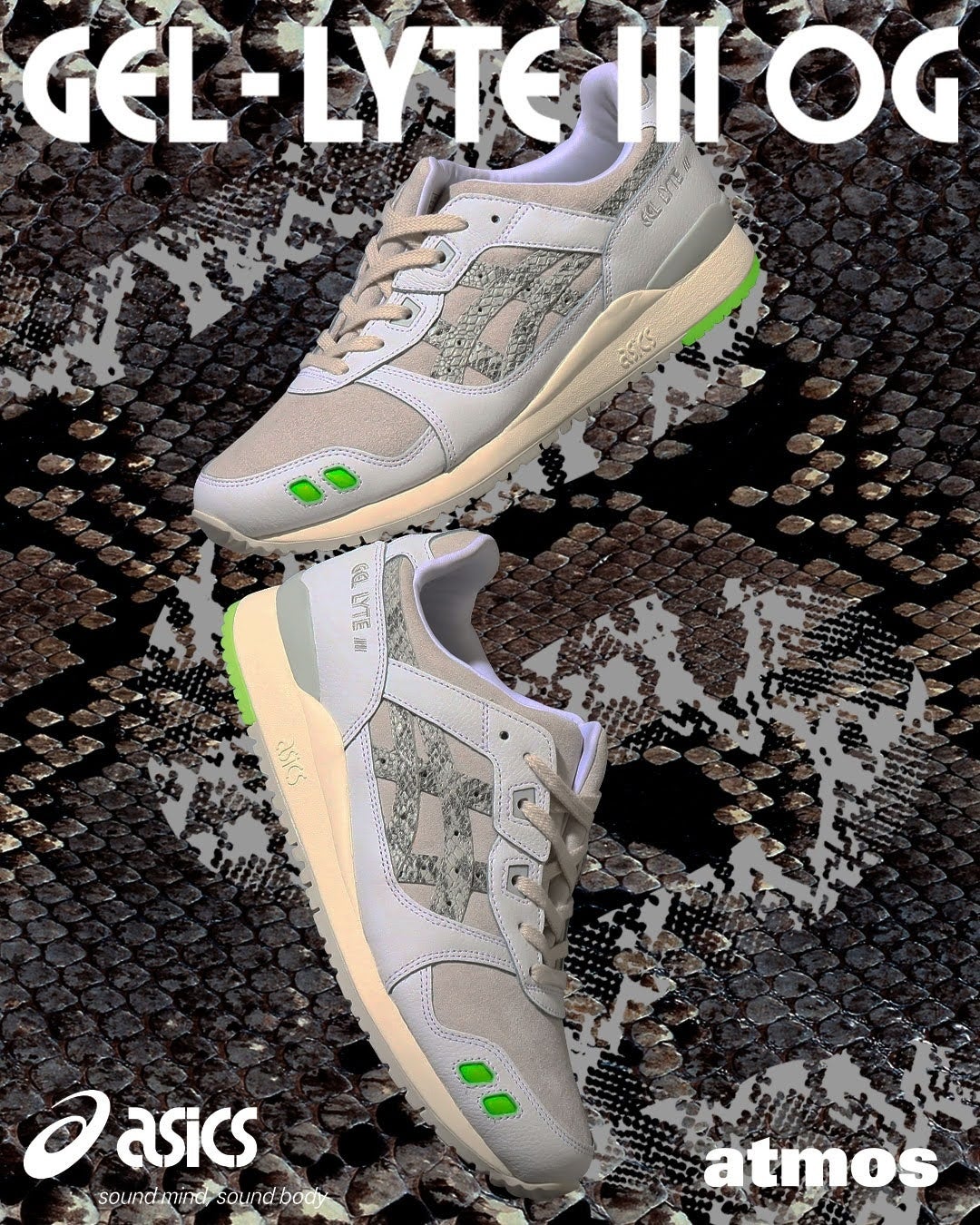 atmosによるオリジナルのパイソン柄を落とし込んだ「ASICS SportStyle GEL-LYTE III OG “PYTHON”」が発売。