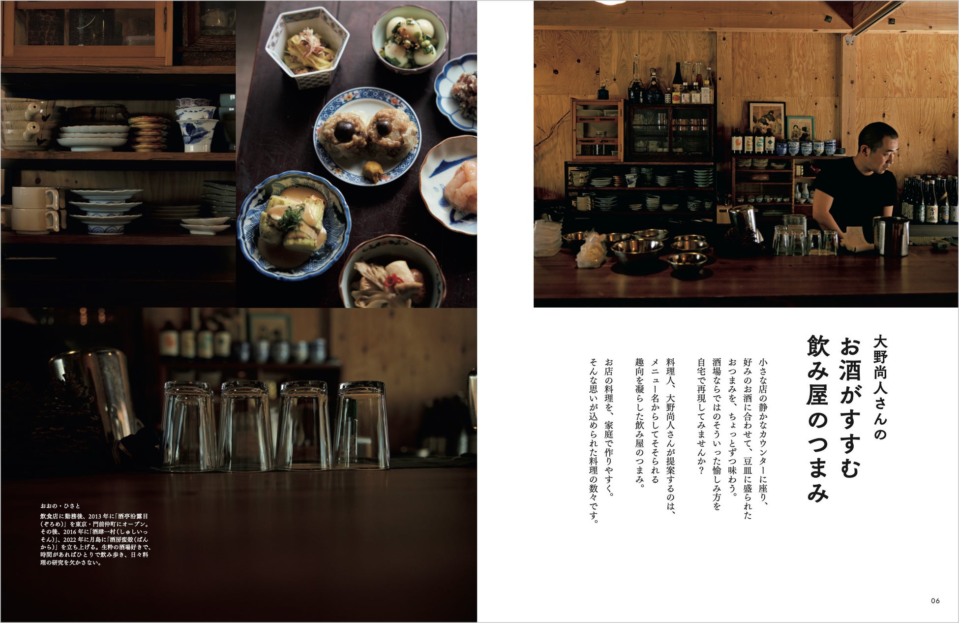 東京・門前仲町の人気居酒屋「酒亭沿露目(ぞろめ)」店主・大野尚人さん、料理家・飛田和緒さん、ワタナベマキさん、上田淳子さんなど、計6名がレシピ提供。少量だからパッと作れるもの、作りおきしてさっと出せるもの…バラエティ豊かなつまみがたっぷり登場します!