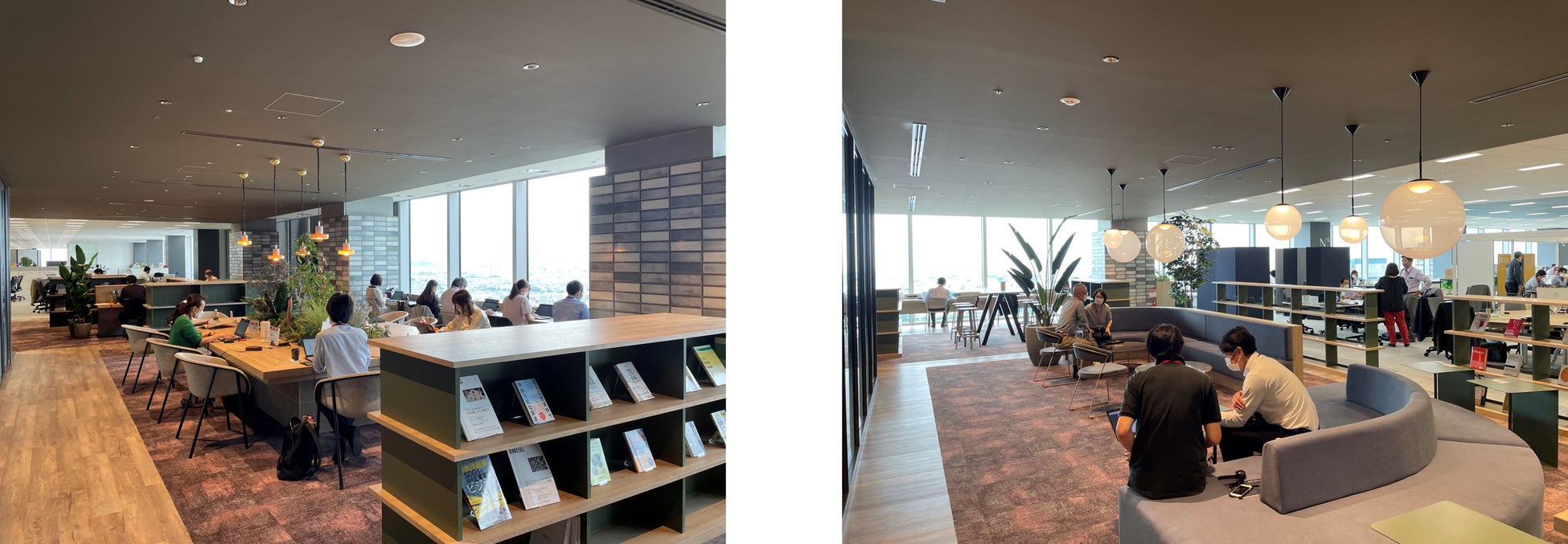 ・共創のための場を従来から約2割増やすとともに4つの機能に分け、従業員が集まりやすい各フロアの中央に配置