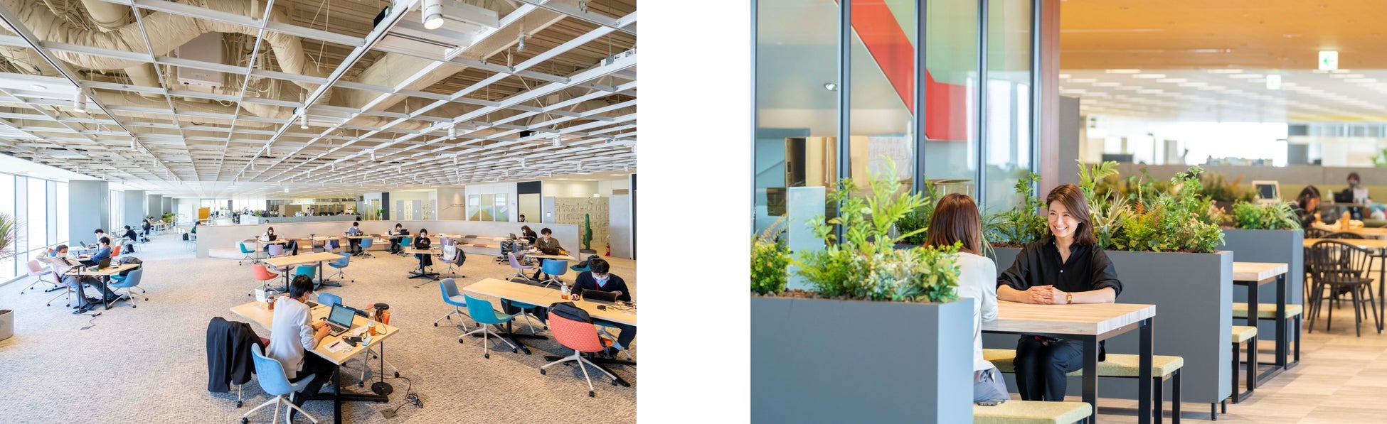・その中で、オフィスの目的を①イノベーション創発を目的とした共創空間②仲間との信頼関係を築くためのリアルな接点・つながりを生む場、チームビルディング③同じ場所で働くことで所属意識=企業ブランドを感じる場、価値観の共有の3点に再定義しています。