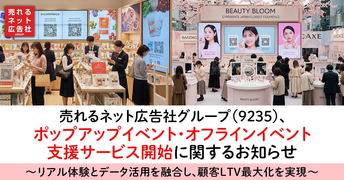 売れるネット広告社グループ(9235)ポップアップイベント・オフラインイベント支援サービス開始に関するお知らせ~リアル体験とデータ活用を融合し、顧客LTV最大化を実現~