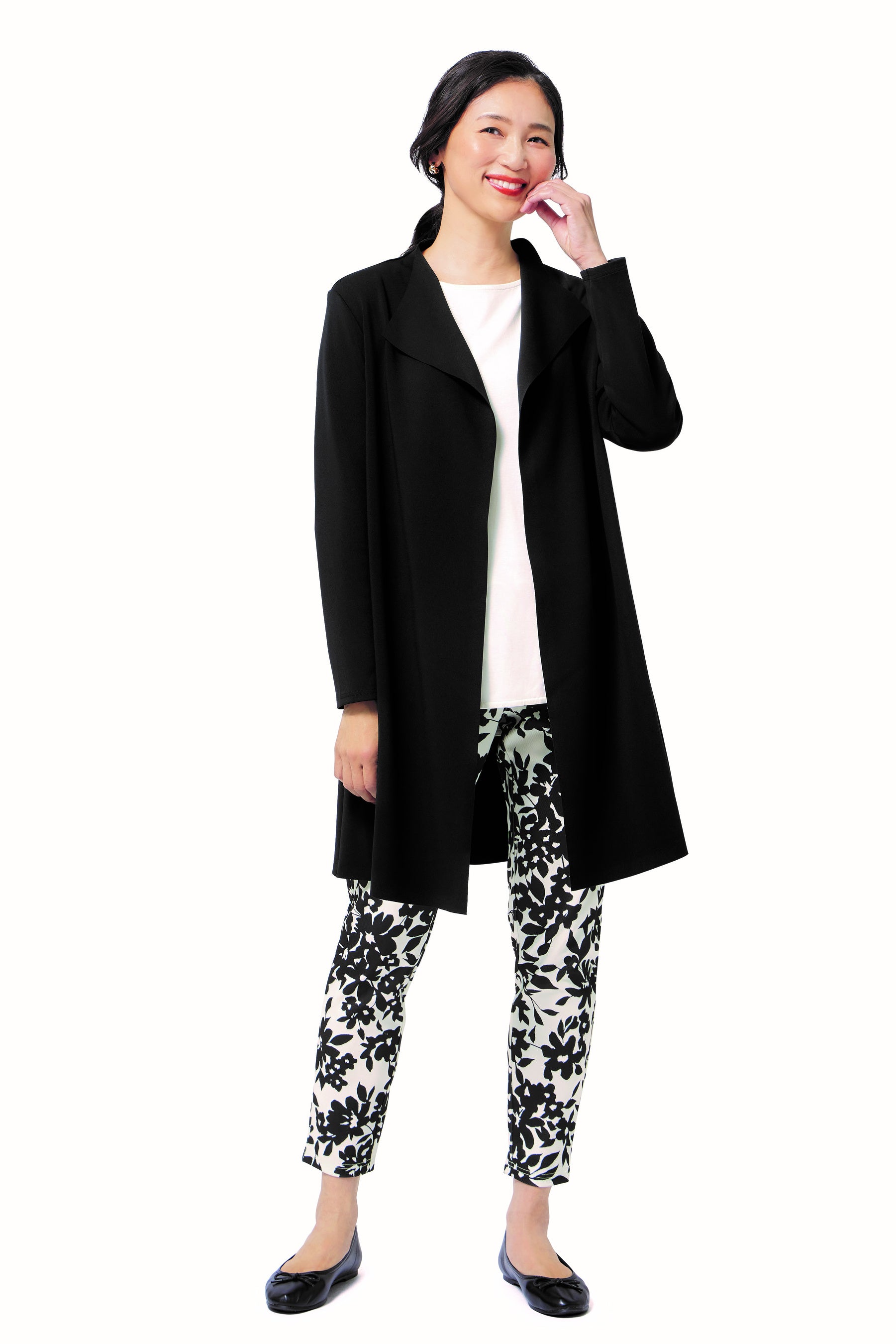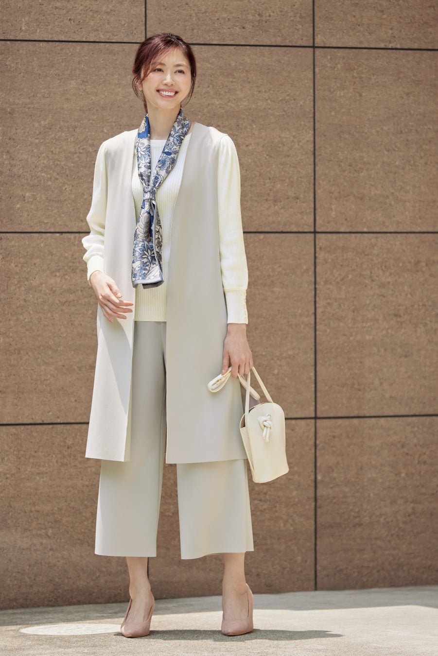 さっと羽織るだけで様々な表情を楽しむことができ、こなれ感のあるコーディネートに。オンオフどのシーンでも活躍できるアイテム。サイドポケット付き。同シリーズのガウチョパンツと合わせて着るのもおすすめ。