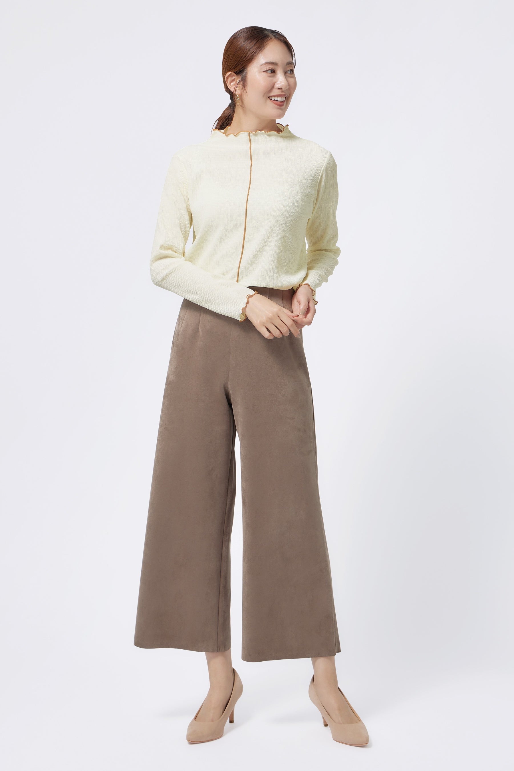 <商品名> ストレッチスウェード調セミワイドパンツ