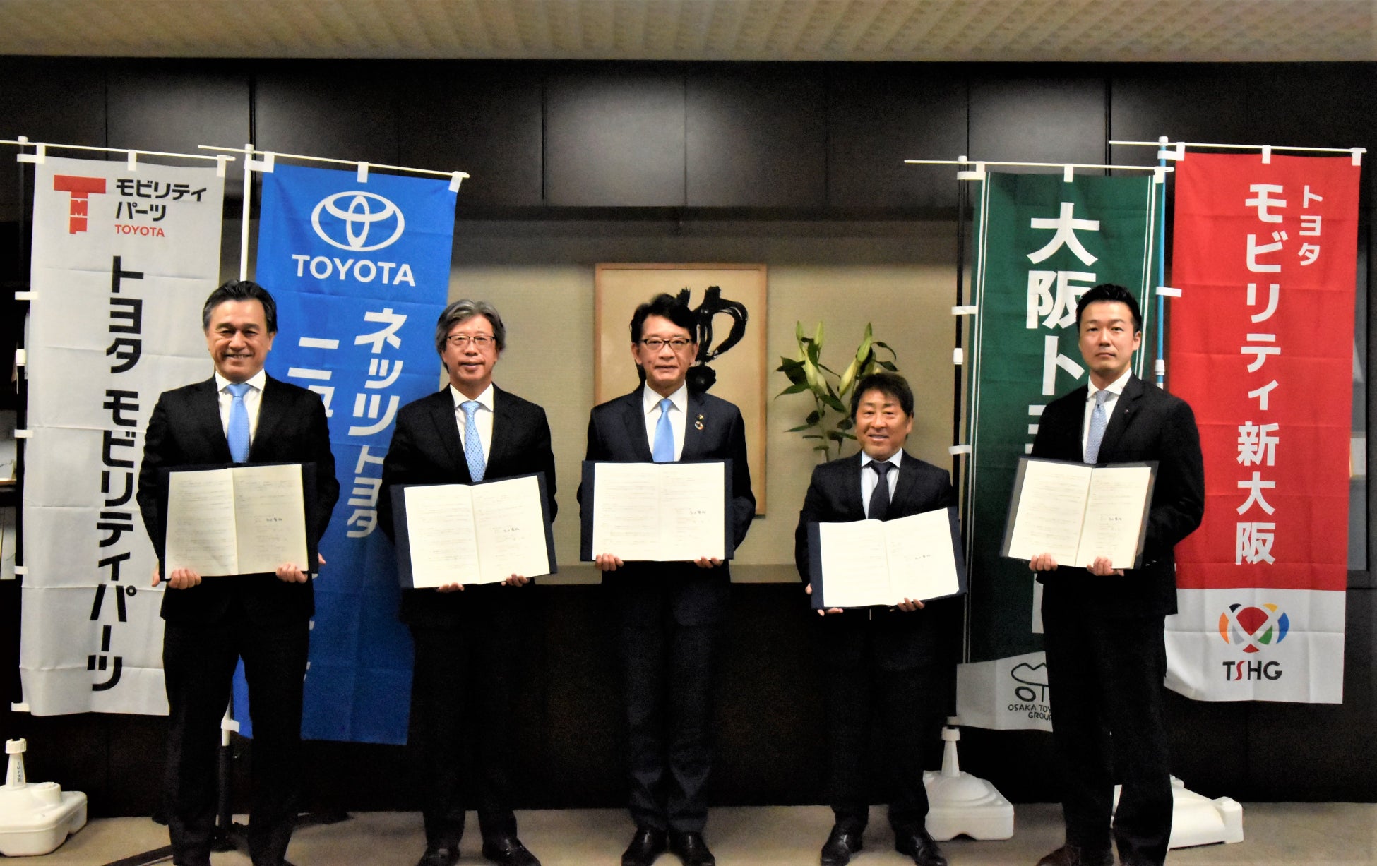 豊中市は、大阪トヨペット株式会社、トヨタモビリティ新大阪株式会社、ネッツトヨタニューリー北大阪株式会社、トヨタモビリティパーツ株式会社大阪支社と、「地域防災力の向上をめざした地域社会の連携に関する基本協定」を締結しました。