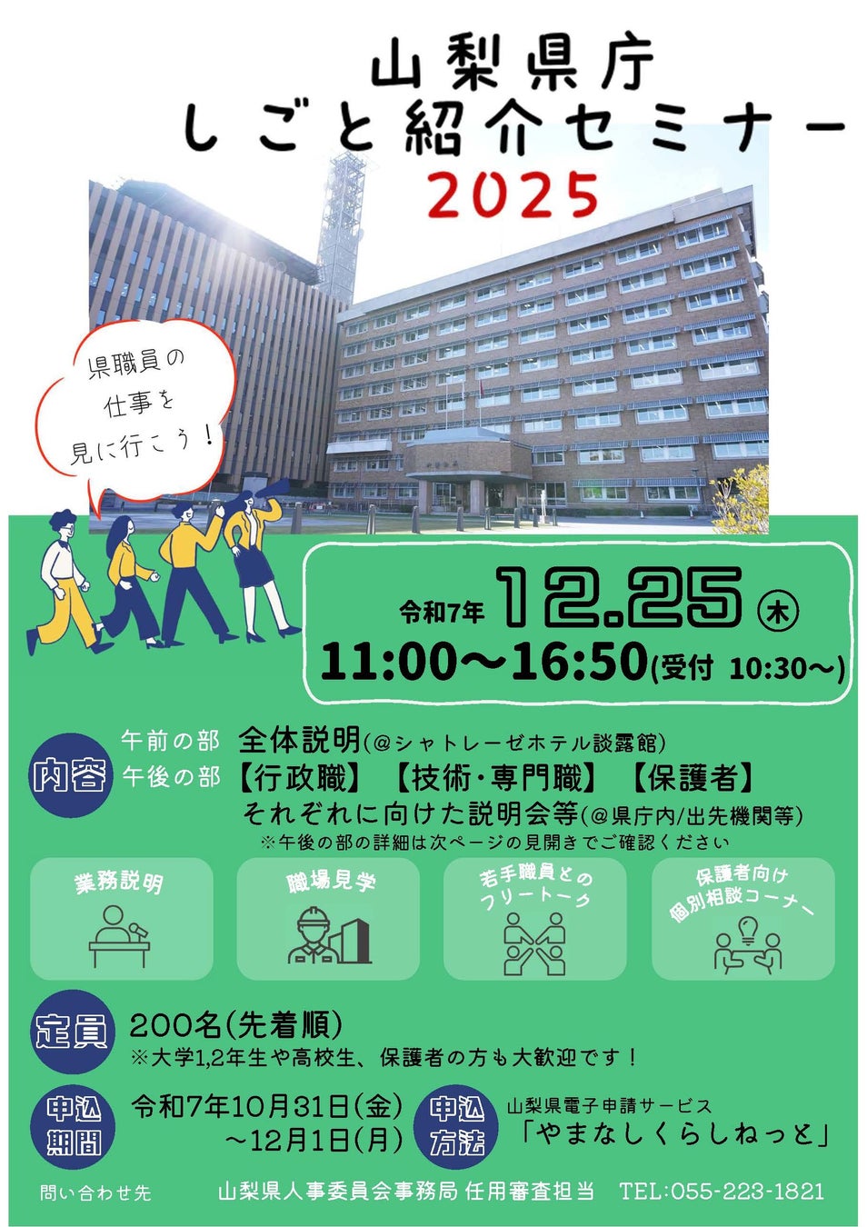 山梨県庁しごと紹介セミナー2025 12月25日開催|山梨県職員の仕事・採用試験情報を現役職員が解説(参加者募集/先着200名)