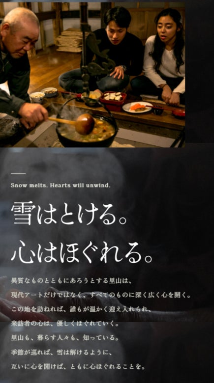 特設サイトでは、十日町市観光の背景にある「現代アート」「雪との暮らし」「心の開放・雪解け」の3つの要素をストーリーに仕立て、ディープ層への訴求を行っています。