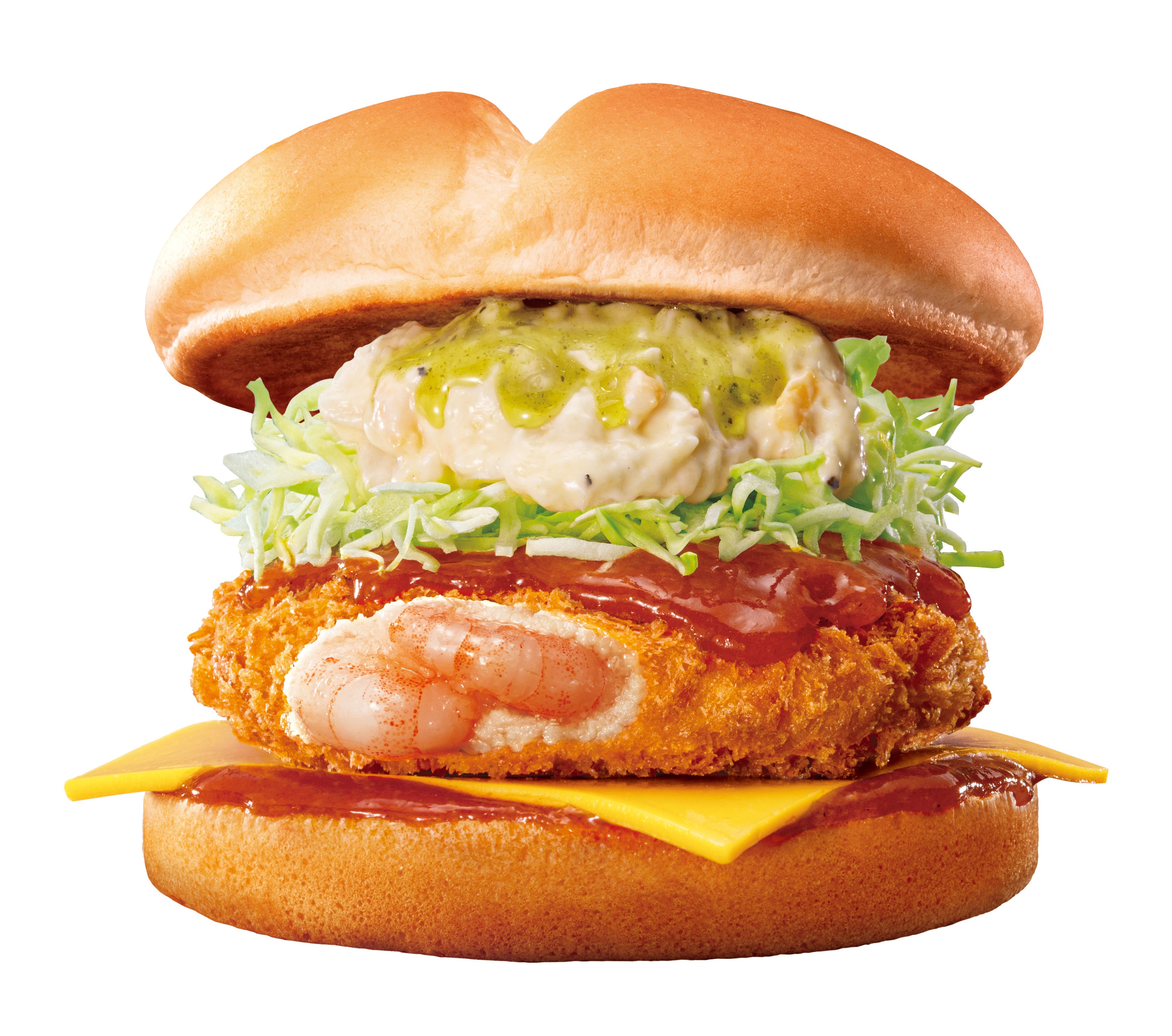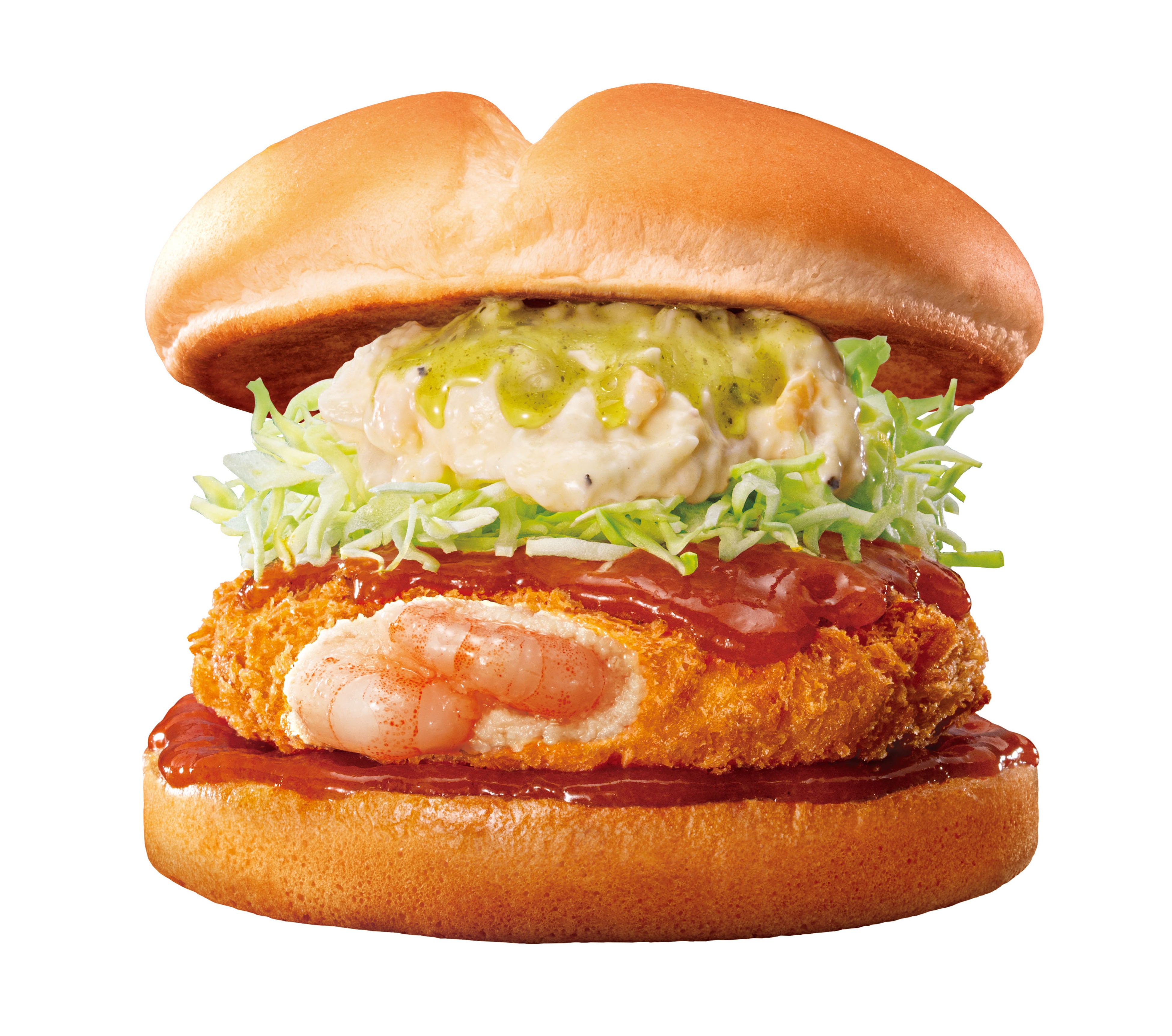 商品概要:プリプリ食感のエビを使用し、粗めに挽いたパン粉でサクサク食感に仕上げたエビパティに“トムヤムクン”をイメージした異国感あふれるさっぱり旨辛ソースを合わせ、バイマックルー※2、特製タルタルソース、キャベツとともにふっくらなめらかな食感のバンズで挟みました。バイマックルーとトムヤムソースのさっぱり旨辛な味わいが夏にぴったりなバーガーです。