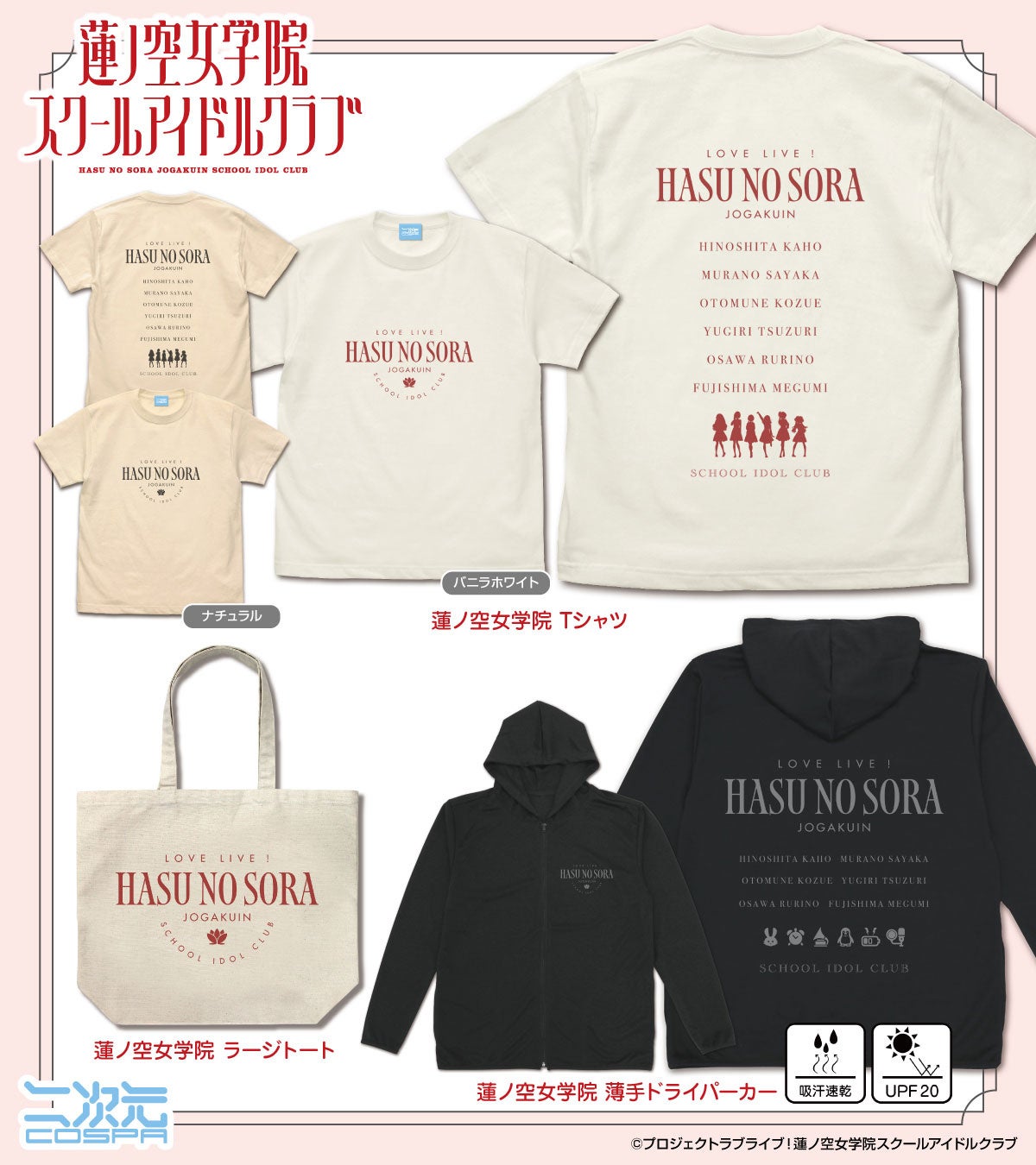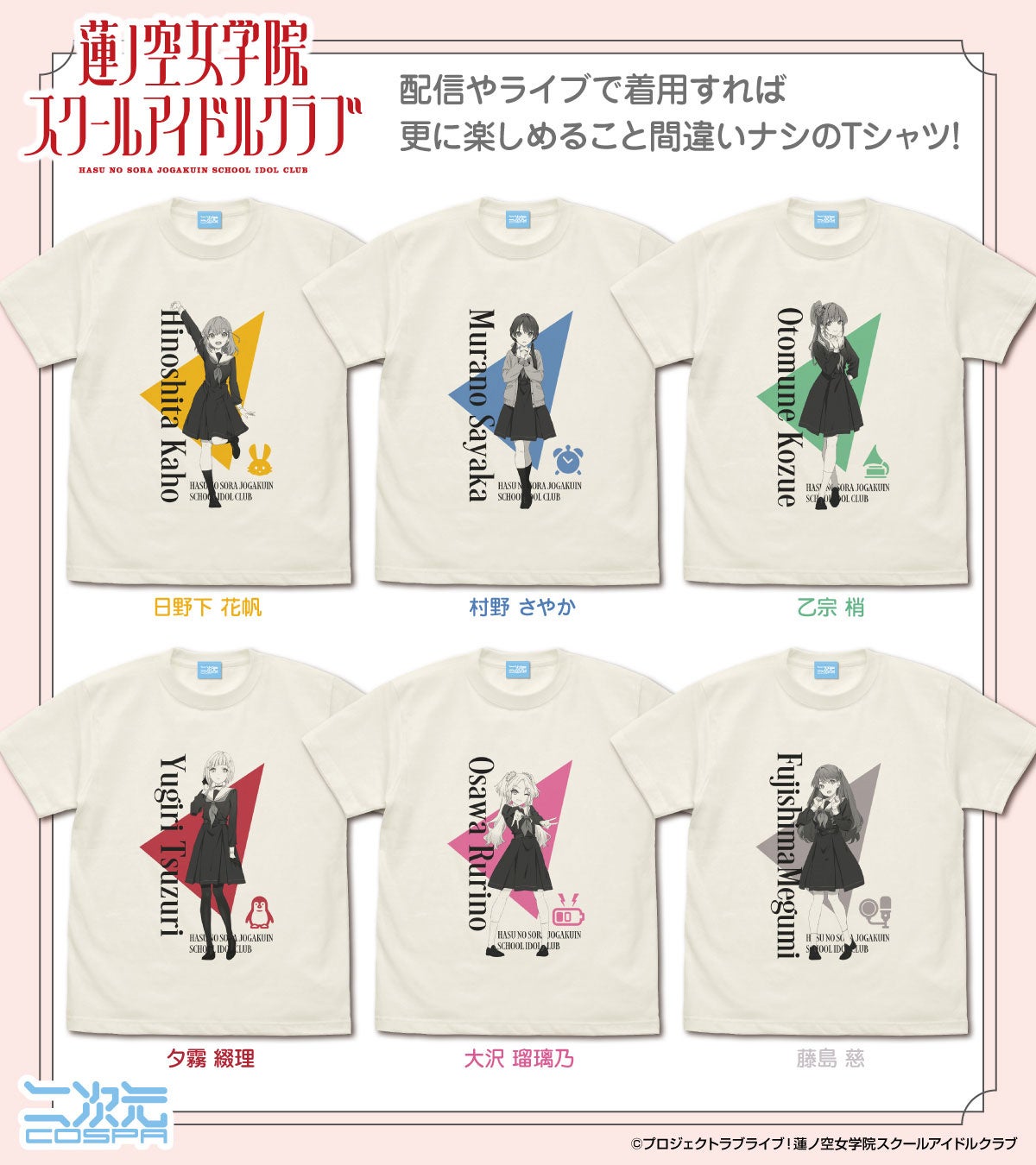 『蓮ノ空女学院スクールアイドルクラブ』メンバーたちの応援にピッタリな「Tシャツ」など新グッズが二次元コスパから登場!【株式会社コスパ】