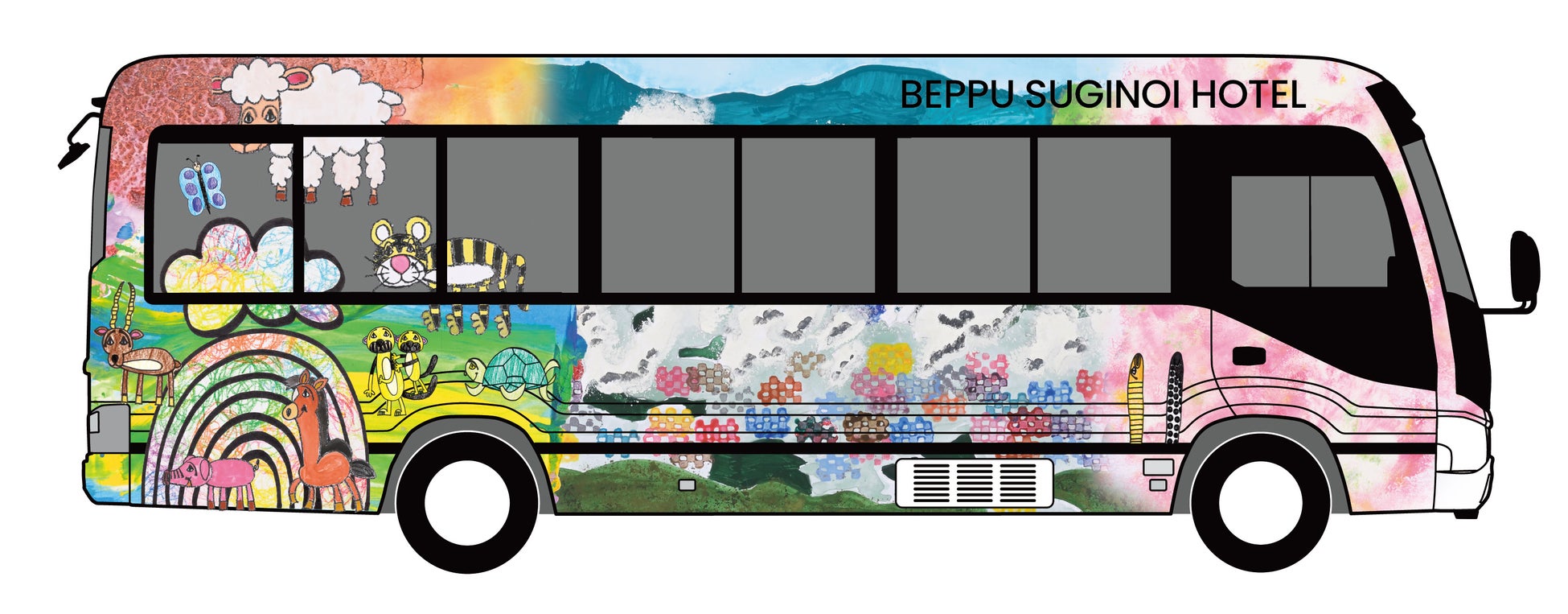 杉乃井ホテルは、別府市のアート振興への取り組みに共感し、大分県および別府市にゆかりのあるアーティストを支援する新たな施策を展開します。「杉乃井アートギャラリー」「JUNPHANT氏デザインのラッピングバス」に続く第三弾として、株式会社naNkaに所属する障がい者アーティストによるラッピングバスの運行を開始します。