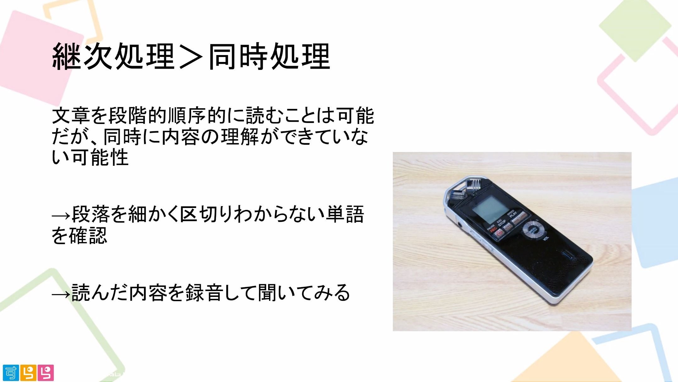 「継次処理」は文章を順序・段階的に読むことが得意なので、段落を細かく区切り分からない単語を確認しながら読み進めていくことがおすすめです。また読んだ内容を録音して聞くことで情報の整理がしやすくなります。