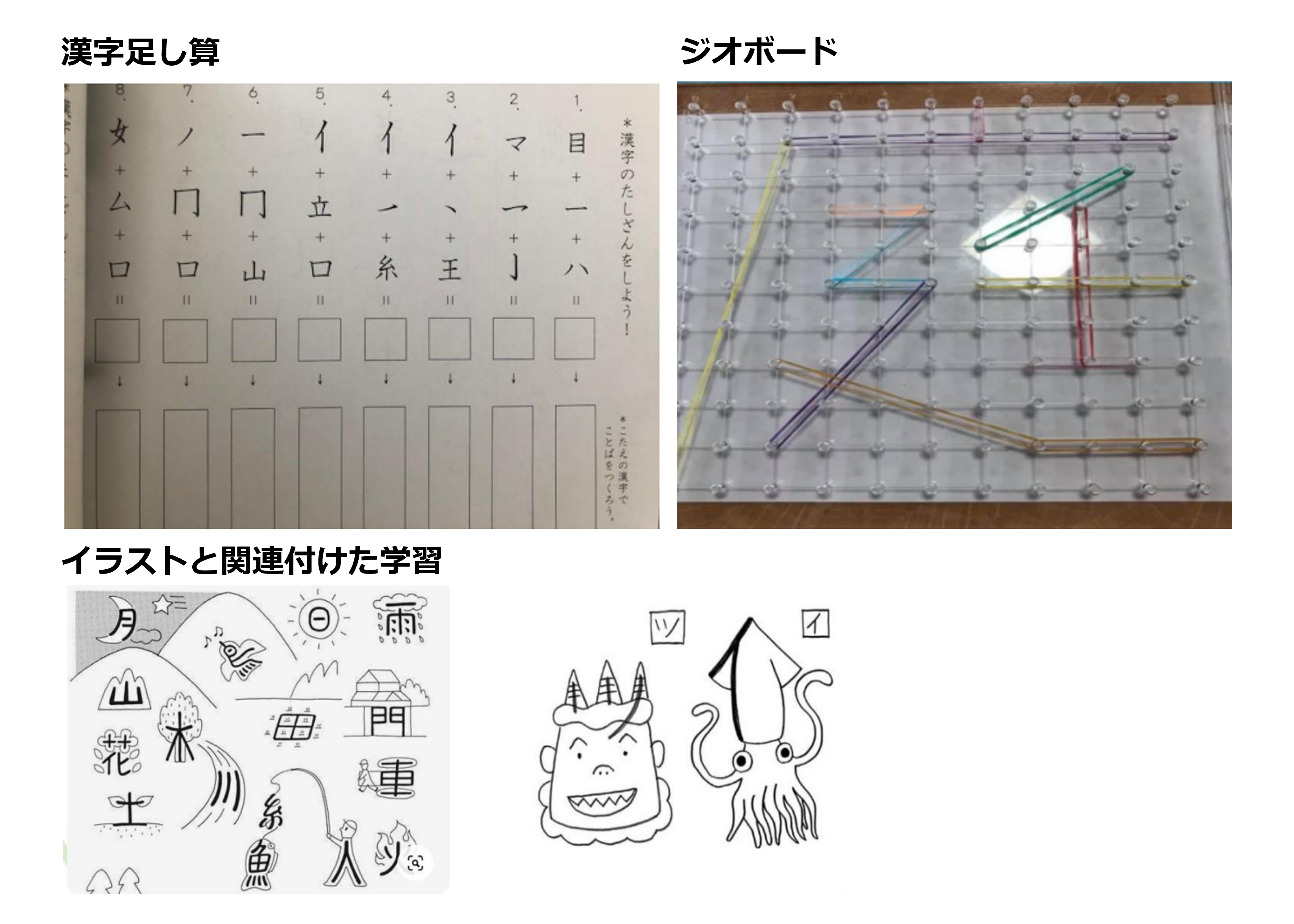 漢字の書きのつまずきには様々な原因があります。上記の方法以外にも『イラストと関連付けさせる』『漢字足し算・穴埋め』『ジオボード』『しり文字』など様々な方法があるので試してみてください。