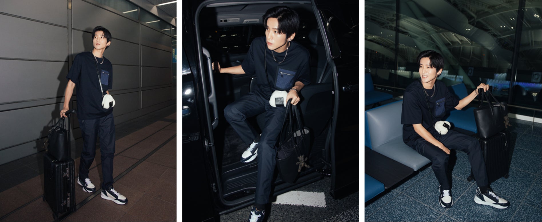 胸元に「FF」ロゴジャガード製のポケットが施されたTシャツに、テクニカル素材を使用したシガレットパンツ、足元には「フェンディ フロー(FENDI Flow)」スニーカーを合わせたフェンディのトータルルックで登場。さらに、「FF」ロゴと「オーロック(O’Lock)」モチーフのイヤリング、「FENDI」のレタリングが施されたシルバージュエリーを着用し、オニギリ型のミニバッグとクマ型のチャームを取り付けた「ゴー トゥー ショッパー(Go To Shopper)」を身に着け、遊び心のあるスポーティなスタイルを完成させました。