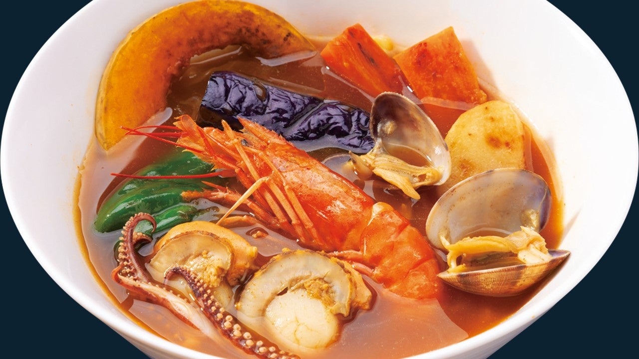 唐辛子、にんにく、クミン、オールスパイス、カルダモンなどのスパイスが、魚介のおいしさを引き立てます。家族で楽しめる中辛テイストです。