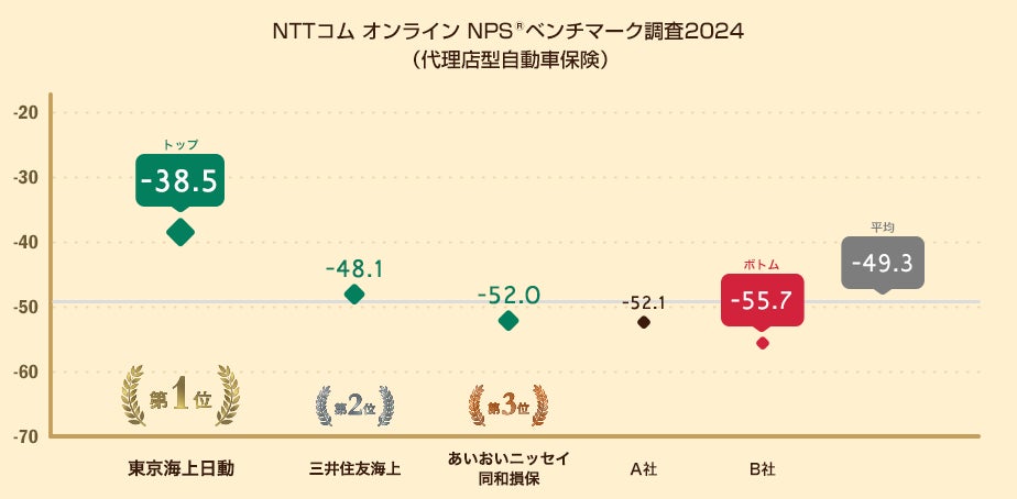 NTTコム オンライン、代理店型自動車保険業界を対象にしたNPS®ベンチマーク調査2024の結果を発表。NPSおすすめランキング1位は6年連続で東京海上日動