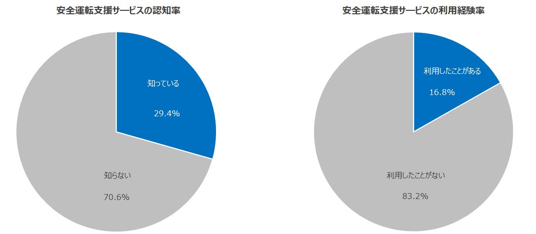 自動車保険各社において、契約者の安全運転をサポートし交通事故の削減につなげる、安全運転支援サービスの提供が進められています。中でも、ドライブレコーダーやスマートフォンを用いて運転状況を把握し、安全運転をサポートしたり、保険料の割引やポイント付与を行うテレマティクス保険サービスが注目されています。そこで、代理店型自動車保険会社が提供する安全運転支援サービスの認知浸透状況を調査したところ、安全運転支援サービスの認知率は29.4%、利用経験率は16.8%となりました。