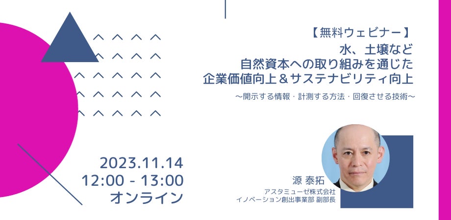 企業のサステナビリティ関係者向け無料ウェビナー「水、土壌など自然資本への取り組みを通じた企業価値向上&サステナビリティ向上 ~開示する情報・計測する方法・回復させる技術~」を再開催
