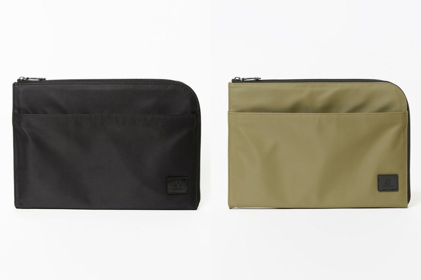 13インチのノートパソコンがすっきり収まる、ドキュメントケース型のクラッチバッグです。ミニマルな設計ながらメインの収納部には両側にクッション材が入っており、パソコンやタブレットなどを衝撃から守ります。前ポケットには、財布やスマートフォン、マウスやケーブル類の収納も可能です。多少の雨水なら弾いてくれるナイロン素材もガジェットを入れるバッグとして相性の良い組み合わせとなりました。