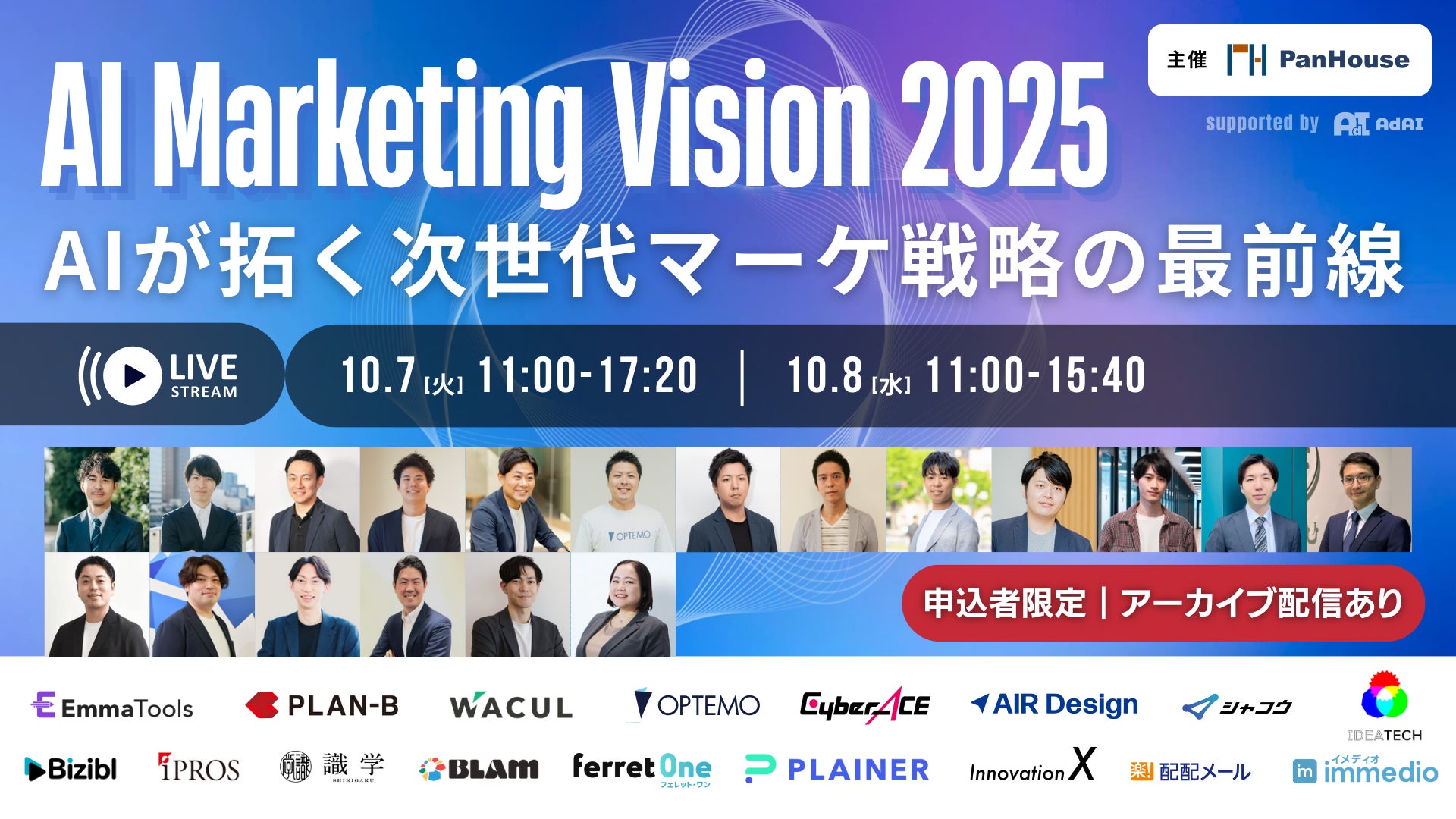 本カンファレンス「AI Marketing Vision 2025」は、「マーケティング×AI」をテーマに、その最前線で実践されている戦略、具体的な成果事例、そして未来の展望を共有・議論する、2日間のオンラインイベントです。