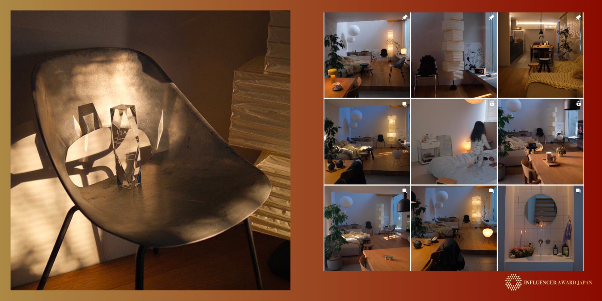 何気ない室内の一コマですが、日々変わる光のゆらぎを絶妙に捉えています。背伸びせず、自然体の投稿で、多くのフォロワーもインテリアや照明の参考にされているのではないでしょうか。