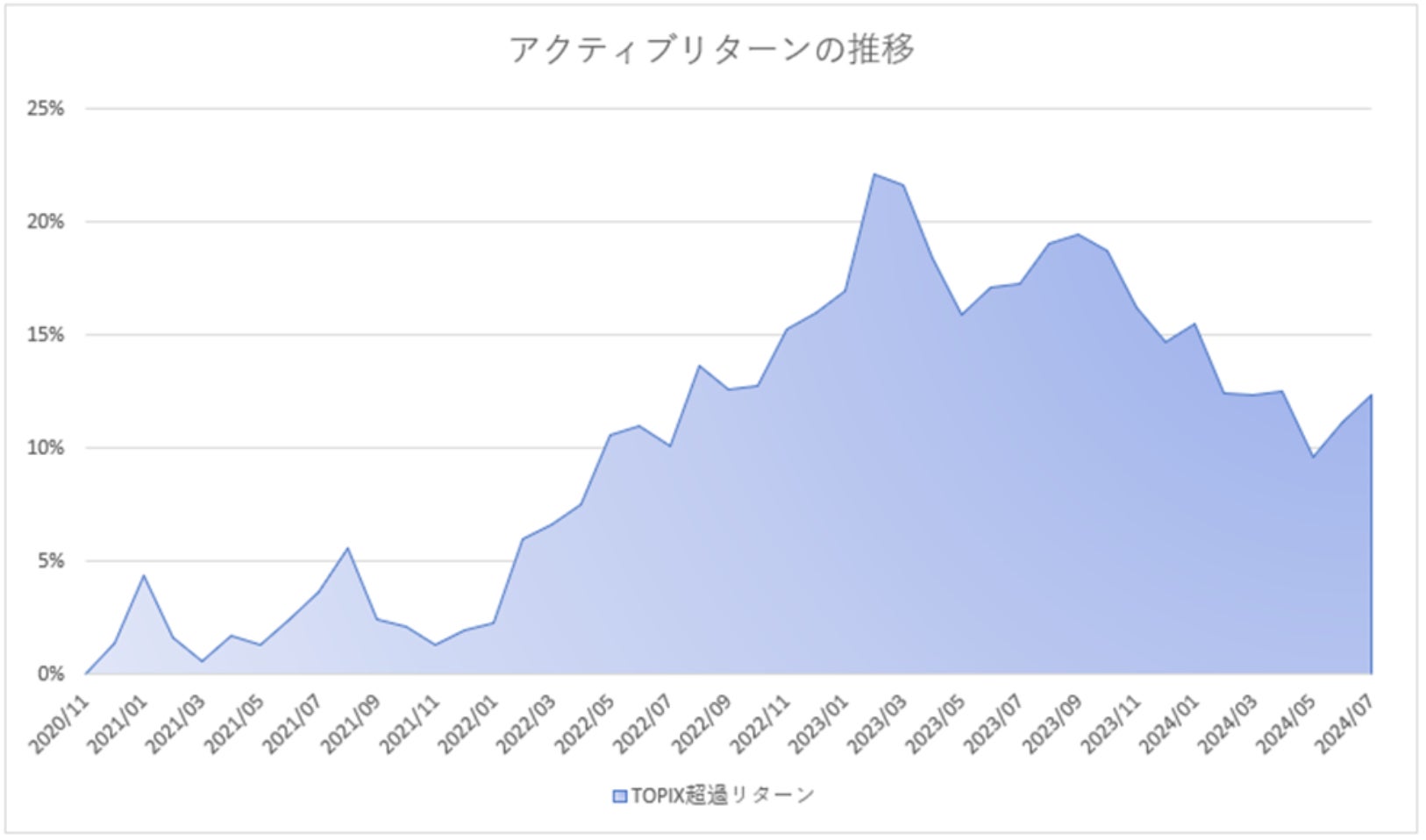 2020年11月末のサービス開始から2023年12月末までの各年の運用実績は10%を超えており、2024年の年初来リターンは7ヶ月経った時点で+17.09%となりました。