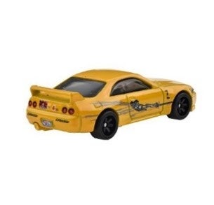 2001年公開の『ワイルド・スピード』第1作で、ブライアンともう一人の主人公であるドミニクの仲間、レオンの愛車を再現したホットウィールです。GT-R第2世代と呼ばれる、8~10代目スカイライン・ベースのGT-Rの中でも、BCNR33は9代目スカイラインをベースにしており、車体がGT-R第2世代の中では最も大きいものとなっています。また、ボディに入る模様は、当時、実車の世界では最新鋭のカスタムとして人気のあった、バイナル(カッティングシート)グラフィックスによるものが施されております。