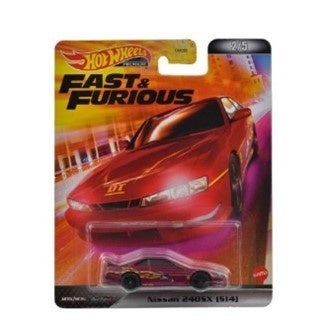 『ワイルド・スピード』シリーズの第1作に登場する、女性ドライバー、レティのドラッグレース用マシーンへと改造された240SXをモデルとしたホットウィールです。240SXは日本では6代目シルビアとして販売された車両の輸出仕様名称で、ホットウィールのS14シルビア後期型をベースに、マルーンのボディにイエローのグラフィックスを施して再現しています。