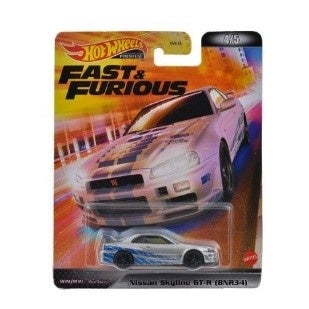 2003年に公開された映画『ワイルド・スピード』シリーズの第2作で、主人公のブライアンが搭乗し、劇中で大ジャンプを決めるなど、スリリングな走りを見せた車両です。 最後のスカイラインGT-R(R35からは日産 GT-Rに改名)として高い人気を誇るBNR34型となっております。また、ホットウィールのBNR34は日産のワークスチューナーであるNISMOが改造した車両をモチーフにしており、『ワイルド・スピード』劇中車同様のカラーリングで仕上げています。