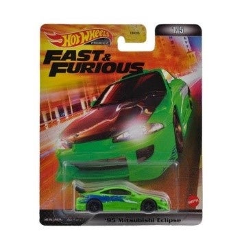 『ワイルド・スピード』の第1作でブライアンの愛機として登場したエクリプスをモデルとしたホットウィールです。RoboCar製のボディキット、バイナルグラフィックス、車体下を照らすネオンライトが印象的です。実車はアメリカの三菱で生産され、日本では左ハンドルの輸入車として販売されており、『ワイルド・スピード』のアイコンとして今なお人気が高いモデルです。