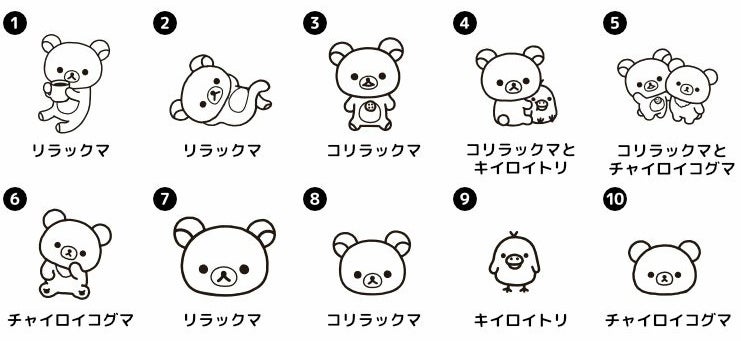 リラックマやキイロイトリ、コリラックマにチャイロイコグマのかわいい10種類から選ぶことができます。