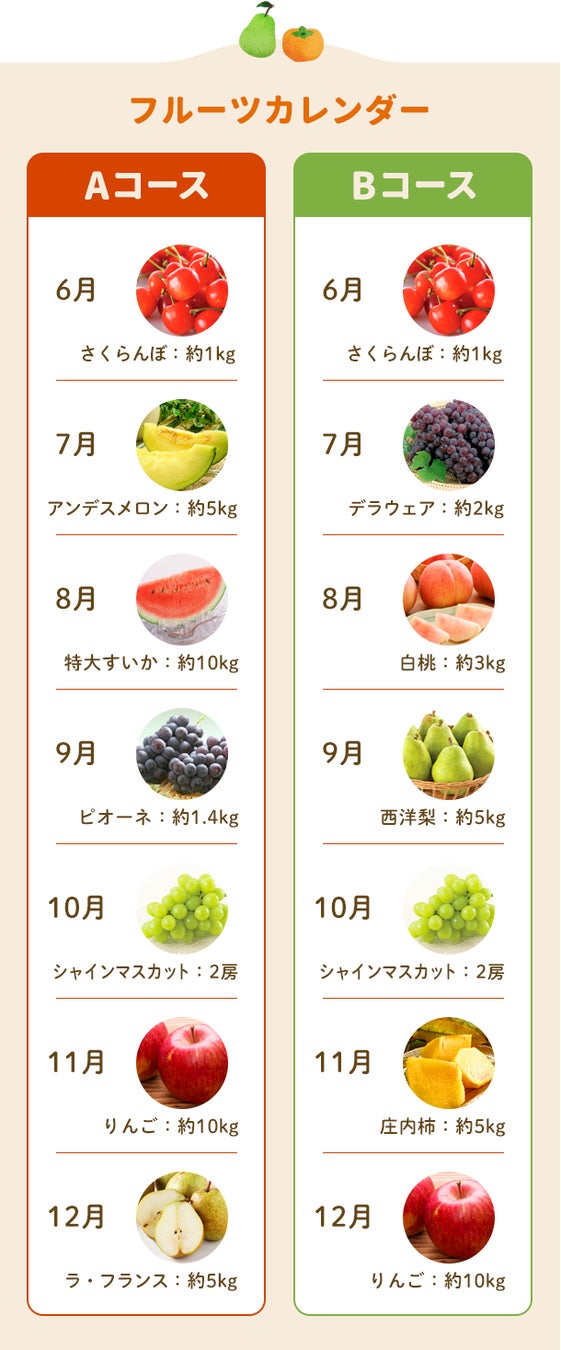 ・内容:フルーツカレンダーに沿って月に1回、毎月お届けいたします。