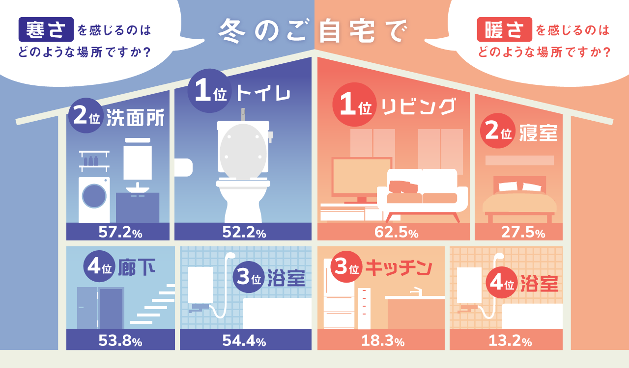 ■寒い場所の1位は「トイレ」、最も暖かい場所は「リビング」という結果に