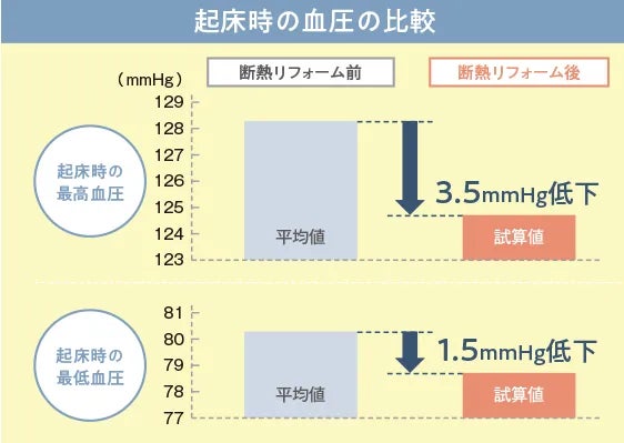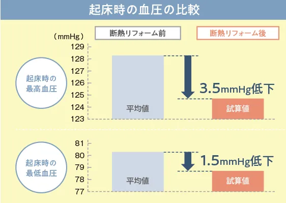 <「起床し布団から出る時」の急激な温度差による血圧の上昇は、断熱リフォームで改善>